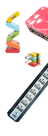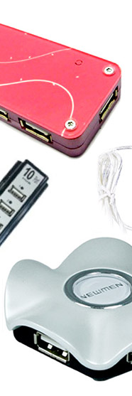 Die USB-Hubs von DOUBLETECH entsprechen dem aktuellen USB-Standard 2.0, der Datenraten von bis zu 60 Megabyte pro Sekunde sind erlaubt. Aber auch ältere USB-1.1-Geräte finden Anschluss. Die Auswahl an Hubs bei DOUBLETECH ist riesengroß, die Mindestbestellmenge liegt bei nur 100 Exemplaren.