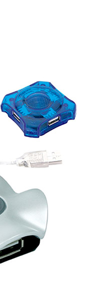 Die USB-Hubs von DOUBLETECH entsprechen dem aktuellen USB-Standard 2.0, der Datenraten von bis zu 60 Megabyte pro Sekunde sind erlaubt. Aber auch ältere USB-1.1-Geräte finden Anschluss. Die Auswahl an Hubs bei DOUBLETECH ist riesengroß, die Mindestbestellmenge liegt bei nur 100 Exemplaren.